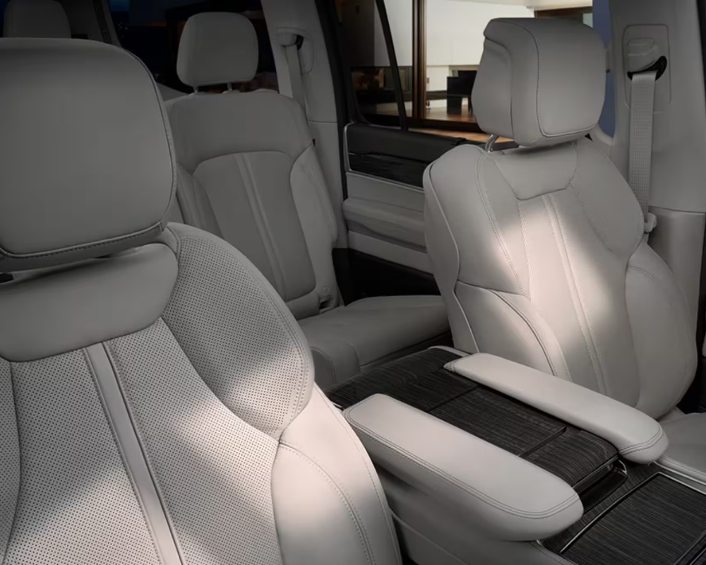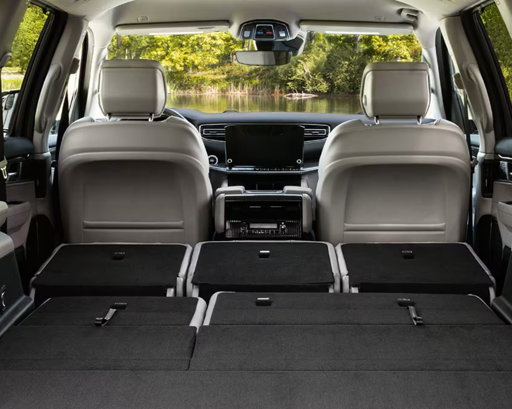 Inside, the Wagoneer is impressively spacious and elegantly appointed. Designed with families and professionals in mind, it features three rows of seating with available leather-trimmed upholstery and power-adjustable front seats. You can expect plenty of legroom and storage, even in the third row. The maximum cargo volume on the wagoneer goes up to 3304.5-litres The standard tri-zone automatic climate control keeps everyone comfortable, while sound-deadening insulation and soft-touch materials give the cabin a true premium feel.