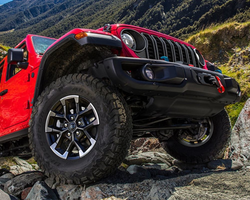 As with every Wrangler, off-road capability remains a top priority. The 4xe includes Jeep’s legendary 4x4 systems like the Rock-Trac® Full-Time 4WD system on the Rubicon 4xe and the Selec-Trac® Full-Time 4WD system on other trims. Front and rear Dana® 44 axles, skid plates, and tow hooks are standard. You also get all-terrain tires, making it one of the most capable electrified SUVs on the market today.